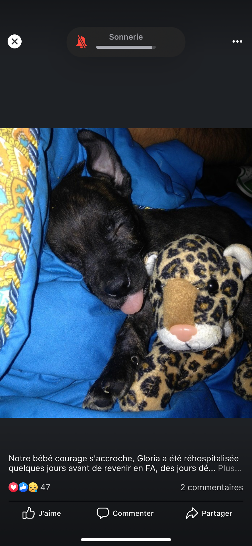 Notre bébé courage s'accroche, Gloria a été réhospitalisée quelques jours avant de revenir en FA, des jours décisifs où elle a fait ses premiers pas enfin, et s'est attachée à l'environnement douillet et familial proposé... De belles découvertes, un appétit d'ogre, des jeux innocents, du caractère drôlement développé, et de gros câlins partagés; mais l'état d'une patte arrière est devenue préoccupant malgré les soins et les traitements. Le verdict est tombé et c'est l'amputation qui s'est imposée. Encore une difficile épreuve pour notre brave choupette, l'intervention a eu lieu hier mais il lui est difficile de remonter la pente pour le moment... Vos bonnes ondes ayant comme toujours le meilleur effet, merci de les lui transmettre pour l'aider à nous revenir, notre cœur est lourd d'inquiétude. Nous avons découvert la véritable version de son arrivée, une fois de plus basée sur le mensonge, puisqu'il s'agissait en fait de la portée de la chienne des gens qui disaient l'avoir trouvée! Alertés par leur entourage qui voyaient les autres chiots mourir les uns après les autres, et écœurés de l'état squelettique de la mère et du dernier chiot en vie. Moins affecté que Gloria qui a du savoir se plaindre (petite guerrière!) bruyamment de ses graves souffrances, ce dernier et la mère ont pu être retirés par une asso, sous la pression. Déjà plus de 1200€ de frais pour sauver Gloria, la facture devrait être envoyée à cette Jennifer Poulain rue d'Artois à Aniche, mais une fois de plus seule l'injustice règnera, et ces gens recommenceront avec d'autres martyrs... Bats toi encore petite puce, tu comptes déjà tellement à nos yeux, on pense énormément à toi. Merci à ceux qui l'ont soutenue et qui le feront encore. On croise les doigts pour Gloria!!!!!!!